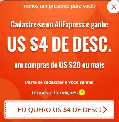 Cupom de U$ 4 dólares no Aliexpress DE GRAÇA